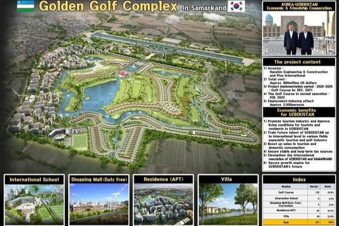 Uchrashuvda Samarqand viloyatida golf maydoni qurish loyihasi yuzasidan kelishuvlar tuzilgan. Unga koʻra, 270 gektar ajratiladigan maydonning 194 ga qismiga golf maydoni va unga tashrif buyuruvchilar uchun turarjoy, 6 gektarga xalqaro maktab, 7 gektarga savdo-koʻngilochar markaz, shuningdek, 55 gektarga koʻp qavatli uy-joylar quriladi.