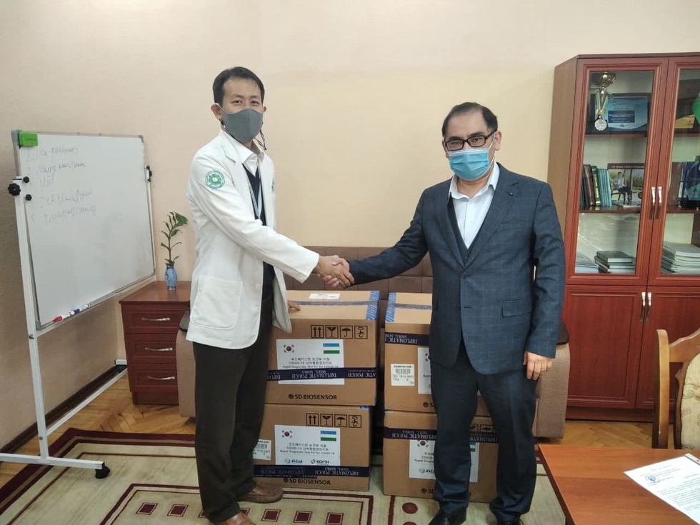 KOFIHning O'zbekistondagi vakolatxonasi rahbari Sebast`yan YU tomonidan Sog'liqni saqlash vazirligiga 4000 dona ekspres-test to'plamlari taqdim qilindi. Vazirlik nomidan ularni vazir o'rinbosari Shohrux Shoraxmetov qabul qilib oldi.