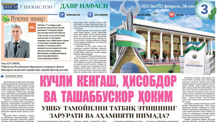 Yangilangan Bosh qonunimizdan soʻng qator huquqiy hujjatlar qabul qilinib, Konstitutsiya normalarini hayotga toʻla tatbiq etish choralari belgilandi. Bu borada Prezidentimizning 2024-yil 2-fevraldagi “Mahalliy davlat hokimiyati organlari faoliyatining samaradorligini oshirish chora-tadbirlari toʻgʻrisida”gi farmoni alohida ahamiyatga ega. Unga koʻra, kengash raisi lavozimi joriy etilishi, bu orqali hokimning vakillik organiga boshchilik qilishiga barham berilishi hokimiyatlar boʻlinishiga oid konstitutsiyaviy prinsipning mahalliy darajada ijrosini taʼminlashda muhim qadam boʻldi.
