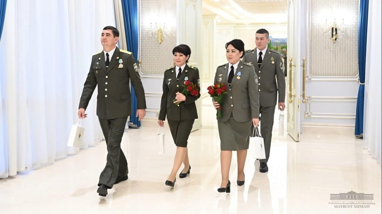 Marosimda Prezident Shavkat Mirziyoyev unvon toʻgʻrisidagi guvohnomalarni, orden va medallarni tantanali ravishda topshirdi. Vatan himoyachilariga sihat-salomatlik, zimmasidagi olijanob vazifalarni samarali ado etishda ulkan zafarlar tiladi.