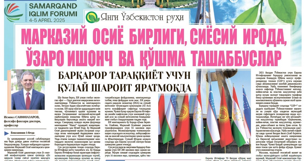 Yevropa Ittifoqi uchun Markaziy Osiyo muhim hamkor. Shu oʻrinda tarixga murojaat qilsak: oliy darajadagi “Markaziy Osiyo — Yevropa Ittifoqi” formatini yoʻlga qoʻyish tashabbusi 2022-yilda Oʻzbekiston Prezidenti Shavkat Mirziyoyev tomonidan Markaziy Osiyo davlatlari rahbarlari va Yevropa kengashi Prezidenti Sharl Mishelning Ostonadagi uchrashuvi chogʻida ilgari surilgan. Bu tashabbus Oʻzbekistonning tashqi siyosiy doktrinasiga mos. Unda Markaziy Osiyoni birlashtirish, shuningdek, samarali xalqaro hamkorlikni rivojlantirish orqali mintaqani barqaror taraqqiy ettirishga qaratilgan saʼy-harakatlar ustuvor.