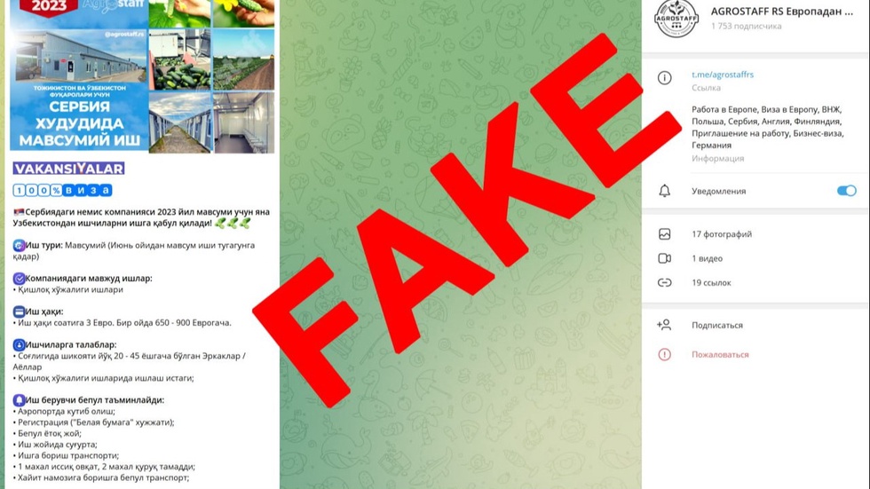 Fuqarolarni xorijga ishga joʻnatish uchun litsenziya olgan xususiy bandlik agentliklari reyestrida esa “AGROSTAFF RS” tashkiloti mavjud emas.