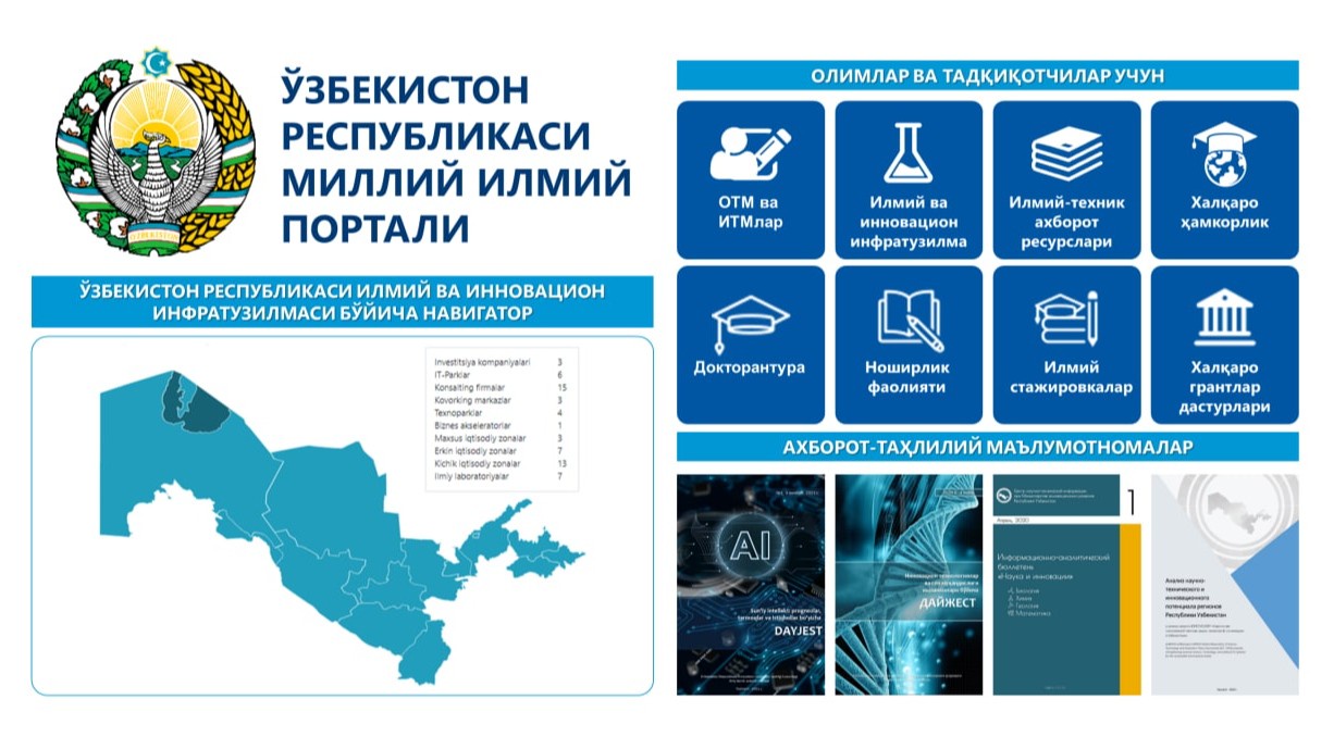 Bir necha yil avval ilmga kirib kelgan yosh olimlarimiz oʻzlariga kerakli maʼlumotlarni kutubxona, sohaga oid manzillarga, ilmiy yoʻnalishda faoliyat yuritayotgan professorlarimizdan olishardi yoki dunyoda yuz berayotgan maʼlumotlardan boxabar qolishar edi. Endi ilm-fanga oid barcha jabhalarni, ilmiy loyihalar, dunyo ilmiy nashrlari toʻgʻrisidagi maʼlumotlar va boshqa koʻplab imkoniyatlarga ega baza bir portalga jamlandi.