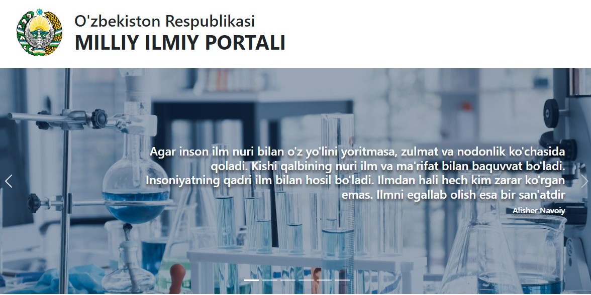 “Milliy ilmiy portal” Innovatsion rivojlanish vazirligi huzuridagi Ilmiy-texnik axborot markazi tomonidan yoʻlga qoʻyilgan boʻlib, Oʻzbekistonda ilk bora mamlakatning ilmiy salohiyatiga oid barcha maʼlumotlarni oʻz ichiga olgan. Mazkur portal ilmiy faoliyatga oid davlat dasturlari doirasida moliyalashtirilgan boʻlib, mamlakatimizda faoliyat yuritayotgan olimlar, tadqiqotchilar, shuningdek, keng jamoatchilik vakillarini ilm-fan sohasiga birlashtirish maqsadida yoʻlga qoʻyildi.