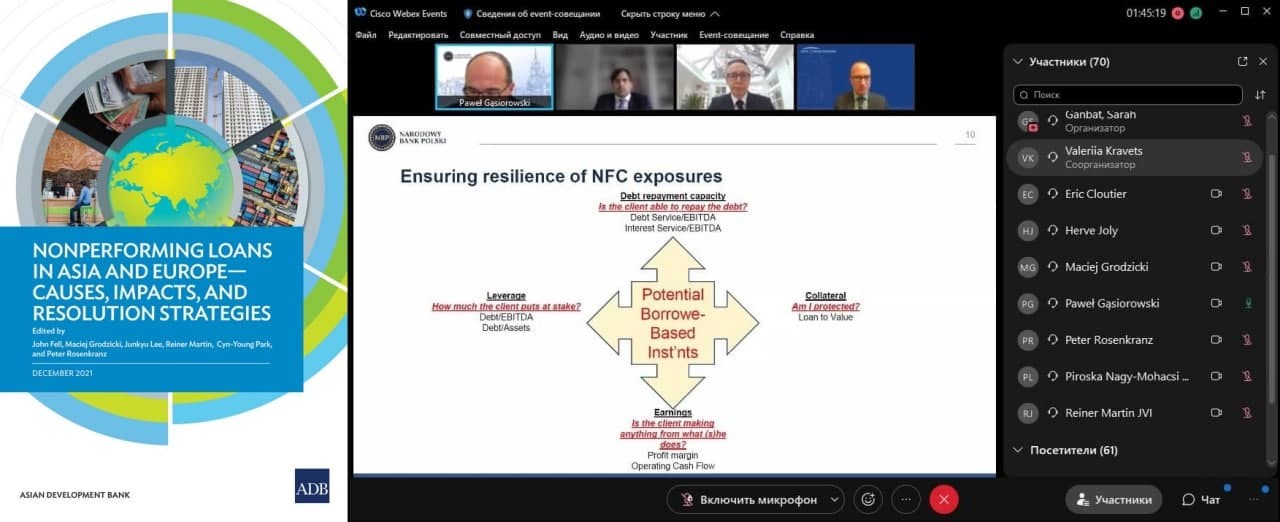Vebinar Osiyo taraqqiyot banki va Yevropa markaziy banki tomonidan amalga oshirilgan maxsus ilmiy tadqiqotlar natijalariga bag'ishlandi. Unda Osiyo va Yevropada “muddati o'tgan kreditlar” sonining oshishi, sabab va oqibatlari hamda siyosiy yechimlari yuzasidan asosiy tushunchalar berildi.