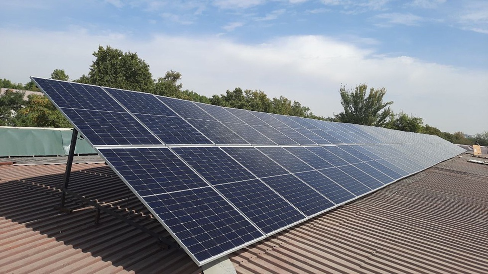 Quyosh fotoelektr stantsiyasi Qo'mita binosini kunduz kuni to'liq elektr energiyasi bilan ta'minlaydi.