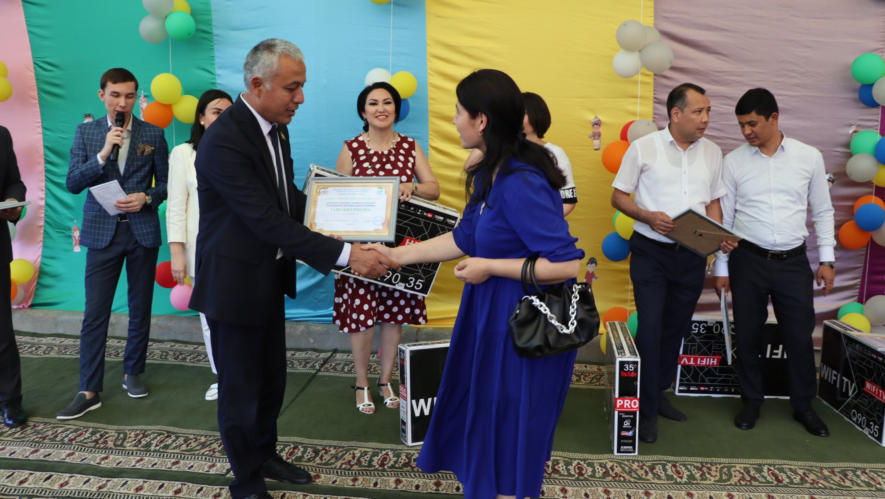 Tadbir yakunida 150 dan oshiq ishtirok etgan bolalarga “Orient Ceramic” MChJ va "Mega Logistics Service" MChJning sovg‘alari tortiq etilib, bayram dasturxoni tashkil etildi.
