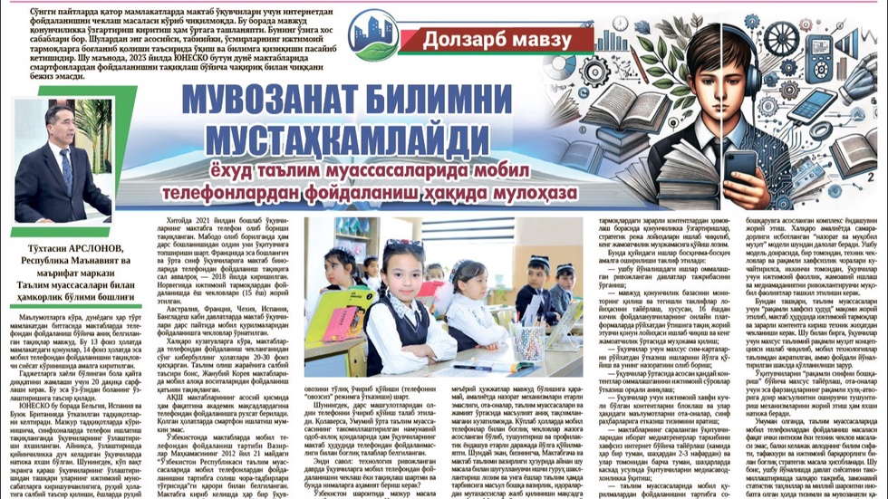 Endi savol: texnologiya rivojlangan davrda oʻquvchilarga mobil telefondan foydalanishni cheklash yoki taqiqlash shartmi va bunda nimalarga ahamiyat berish kerak?
