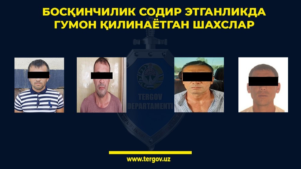 Olib borilgan tergov va tezkor qidiruv tadbirlari davomida ushbu jinoyatni 53 yoshli G'.Q., 44 yoshli U.YU., 29 yoshli J.T. va 35 yoshli SH.T.lar sodir etilganligi aniqlanib, barchasi protsessual tartibla ushlanganlar.