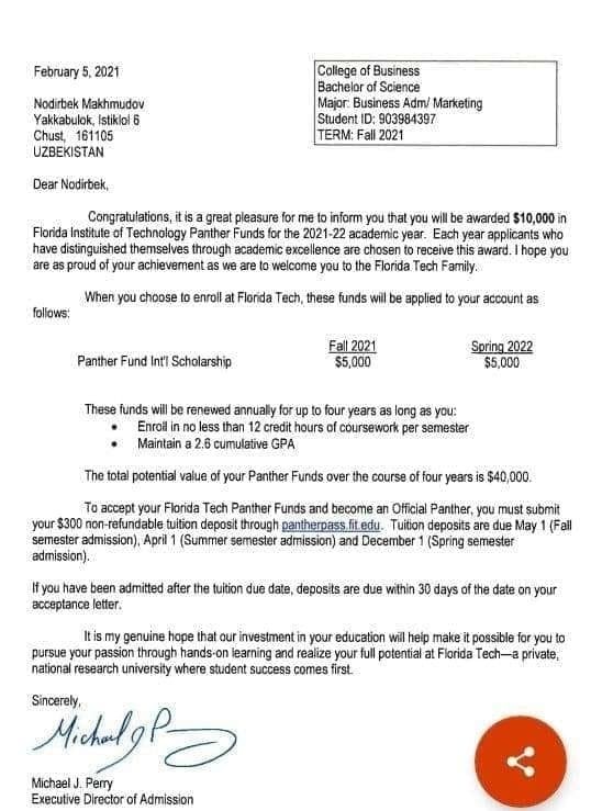 74-umumtaʼlim maktabining 11-sinf oʻquvchisi Nodirbek Mahmudov esa Florida universitetida taʼlim olish uchun 40000 dollar miqdorida grantni qoʻlga kiritdi.