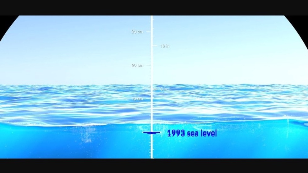 Animatsiyani Endryu Kristensen yaratdi. U 1993-yildan 2022-yilgacha Yer ustida uchib yurgan sun'iy yo'ldoshlar tomonidan qayd etilgan global dengiz sathining o'zgarishi haqidagi ma'lumotlardan foydalandi.
