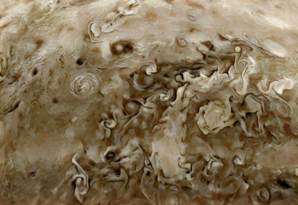 Olgan barcha kadrlar kosmik kemaning Yupiter atrofida soatiga 200 ming kilometr tezlikda uchishi paytida olingan.