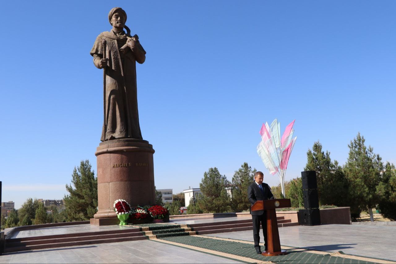 Hazrat haykali poyiga gul qo'yilib, hurmat bajo keltirilganidan so'ng viloyat hokimi vazifasini bajaruvchi Normat Tursunov so'zga chiqib, yig'ilganlarni va butun viloyat ahlini bugungi qutlug' bayram bilan tabrikladi.