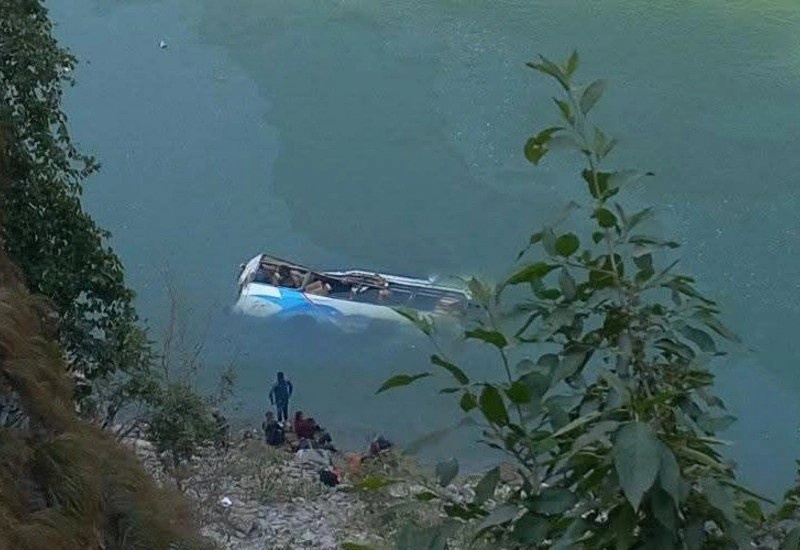Avtobus Ramechxap tumanida 50 metr balandlikdan daryoga tushib ketgan.