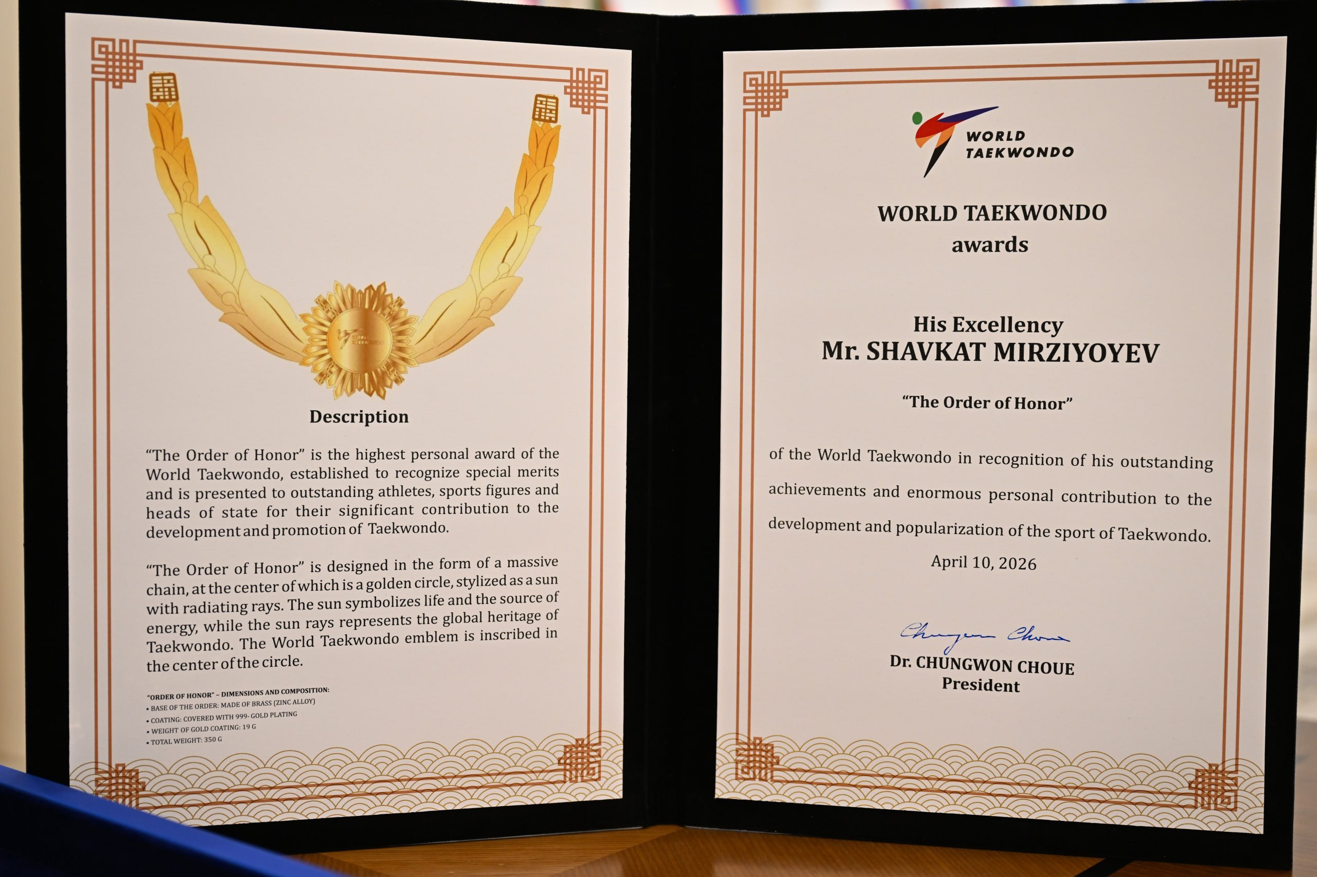 Ushbu orden ilk bor aynan davlatimiz rahbariga taqdim etilgani, bu yurtimizda sportni, xususan, taekvondoni rivojlantirish, yoshlar oʻrtasida sogʻlom turmush tarzini keng targʻib qilish borasida amalga oshirilayotgan keng koʻlamli islohotlarning xalqaro miqyosda eʼtirof etilganidan dalolat berishi taʼkidlandi.