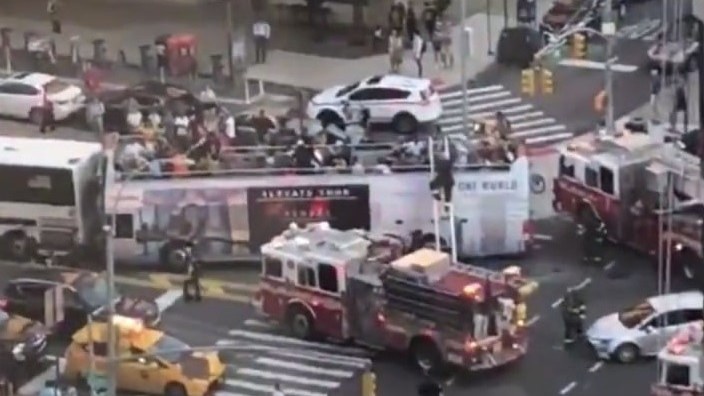 AVSning xabar berishicha, Nyu-Yorkning Manxetten tumanida ikki qavatli sayyohlar avtobusi va shahar yoʻlovchi avtobusi toʻqnashib ketdi.