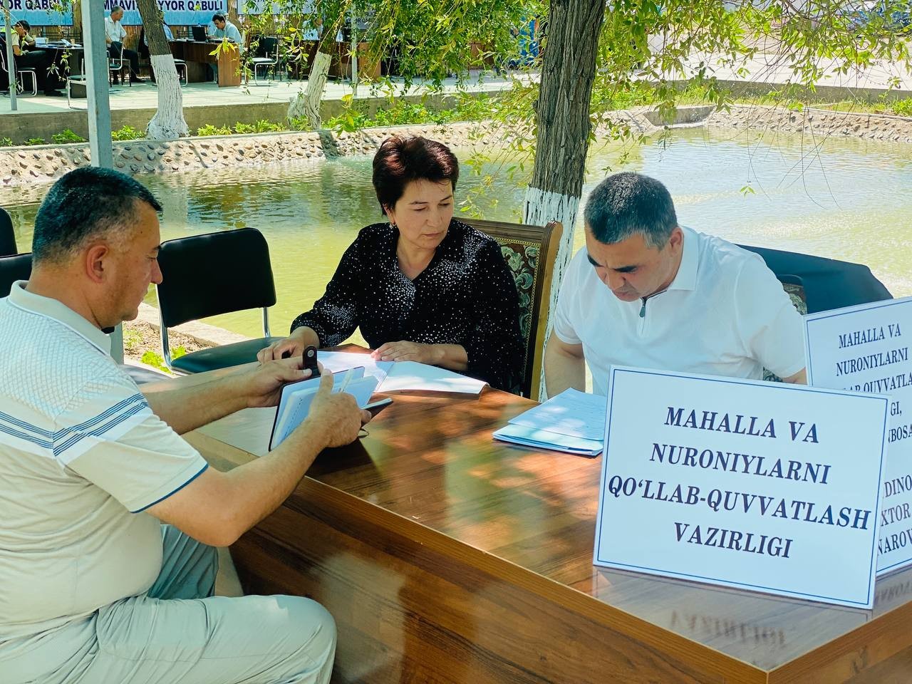 Karmana tumanining “Uyrot” maxallasida istiqomat qiluvchi Ismatulla Ibodov hamda Sanʼat Xasanov shu vaqtgacha ishsizligi bois oilada ham bir muncha muammolar yuzaga kelayotganini taʼkidlab, bandlik masalasida qoʻmita rahbariyatiga murojaat qildi. Quvonarlisi, ularga sayyor qabulning oʻzida ishga qabul qilingani toʻgʻrisidagi boʻyruq rasmiylashtirib, maxsus kiyim bosh ham topshirildi.