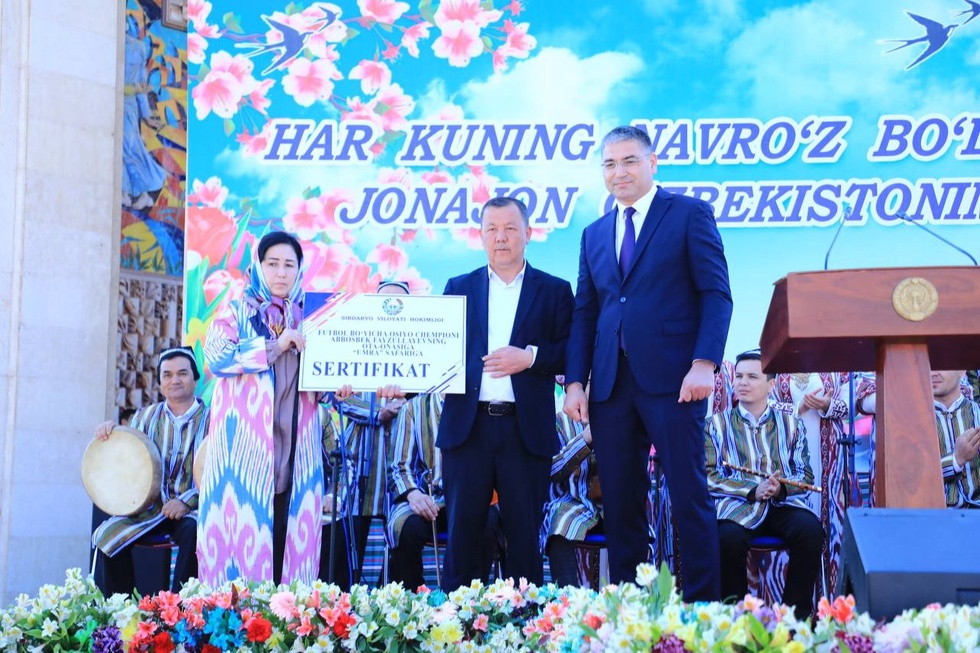 Futbol bo'yicha U-20 Osiyo chempionati g'olibi, musobaqaning “Eng yaxshi futbolchisi” Abbos Fayzullaevning ota-onasi — Saidjon Qodirov va Gulchehra Qodirovaga safar yo'llanmasini Sirdaryo viloyat hokimi v.b. Akmaljon Mahmudaliev topshirdi.