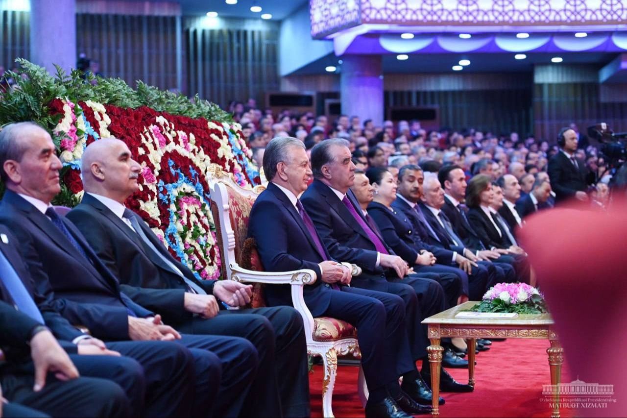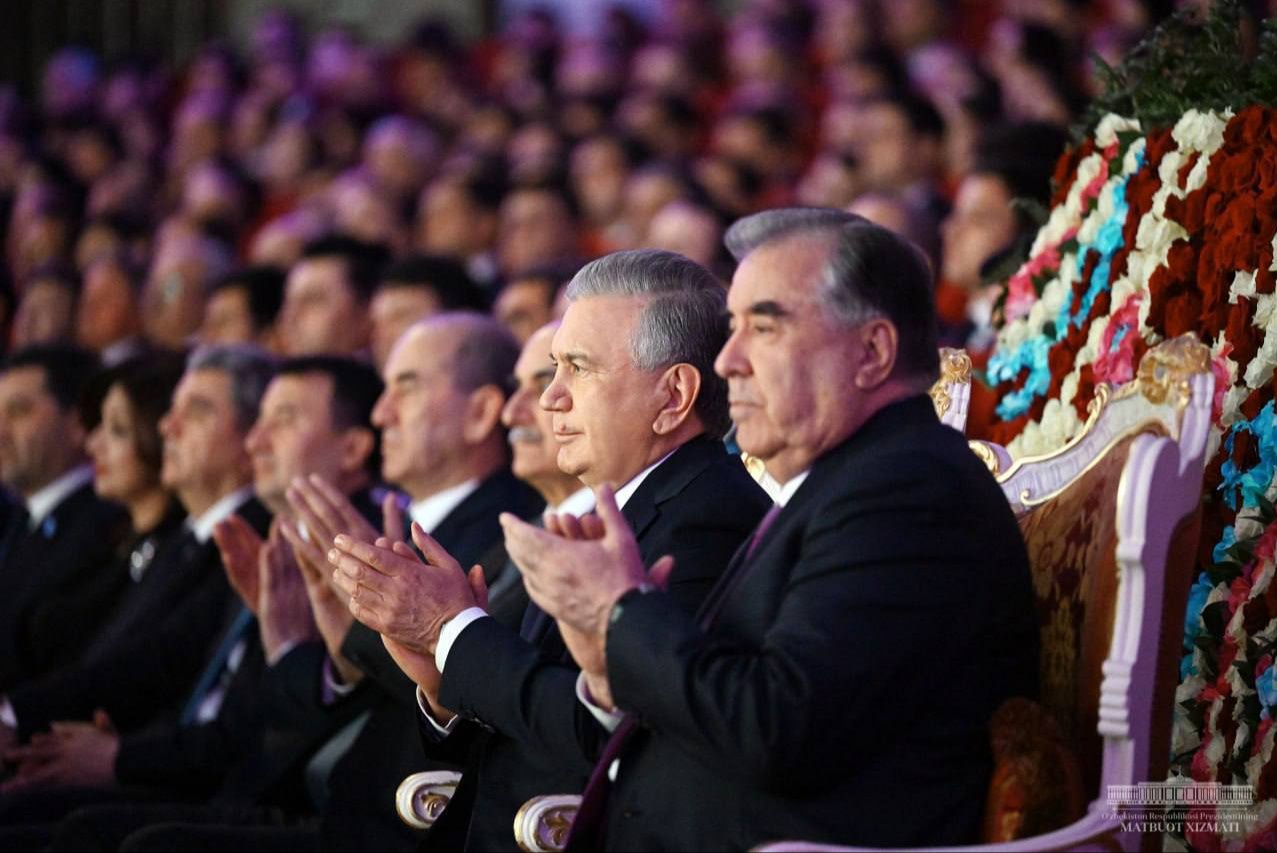 O‘zbekiston Prezidenti Shavkat Mirziyoyev va Tojikiston Prezidenti Emomali Rahmon konsertni birgalikda tomosha qildilar.
