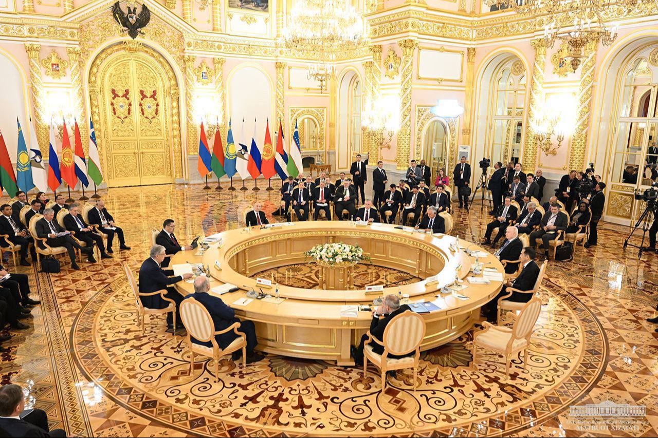 Davlatimiz rahbari so‘zining avvalida Vladimir Putinni Rossiya Federatsiyasi Prezidenti lavozimiga kirishgani bilan tabrikladi. Yig‘ilishning barcha ishtirokchilarini Ikkinchi jahon urushidagi G‘alabaning 79 yilligi va Yevroosiyo iqtisodiy ittifoqi ta’sis etilganining o‘n yilligi bilan qutladi.