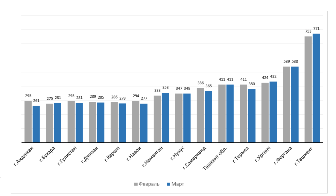Mart oyida poytaxtda ikkilamchi uy-joy bozoridagi oʼrtacha narxlar oʼtgan oyga nisbatan 2,4 foizga oshdi. Eng yuqori oʼsish surʼatlari Chilonzor (3,7 foiz), Mirzo Ulugʼbek (3,7 foiz) va Sergeli (3,2 foiz) tumanlarida qayd etildi.