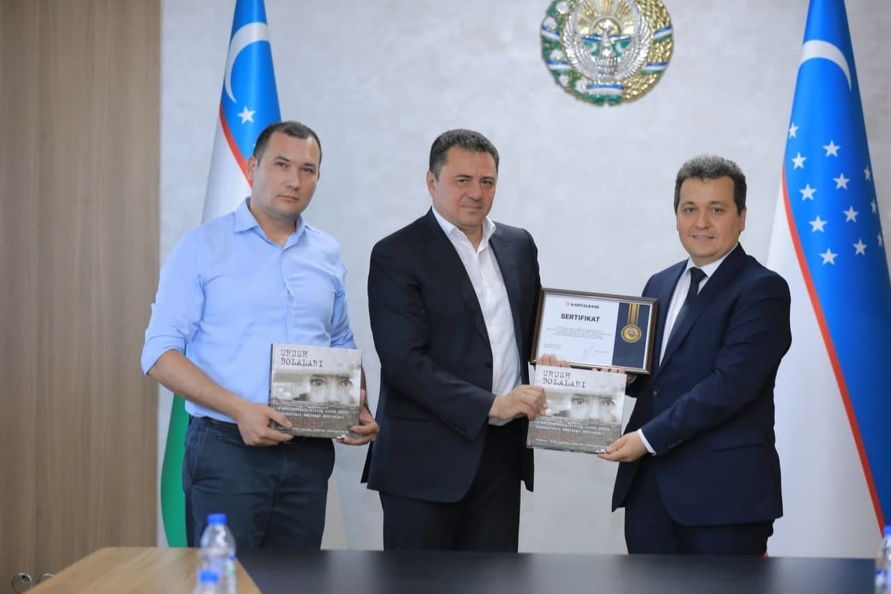 Xalq taʼlimi vazirligiga “Kapitalbank” hamda “Podrobno.uz” axborot agentligi vakillari tomonidan Oʻzbekiston maktablariga “Urush bolalari” kitobining 3000 nusxasini taqdim etish uchun sertifikat topshirildi.