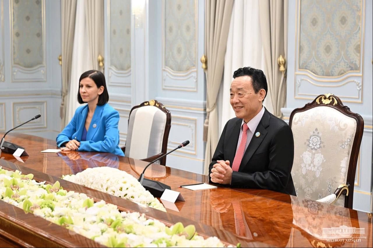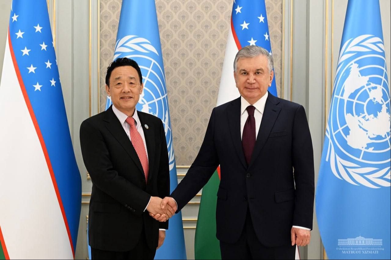 Uchrashuv avvalida mamlakatimiz yetakchisi yuqori darajali mehmonni Birlashgan Millatlar Tashkilotining yetakchi tarmoq tuzilmasi rahbari etib qayta saylangani bilan qutladi hamda shu kunlarda Samarqand shahrida o‘tayotgan konferensiyani qo‘llab-quvvatlagani va uning ishida shaxsan ishtirok etayotgani uchun minnatdorlik bildirdi.