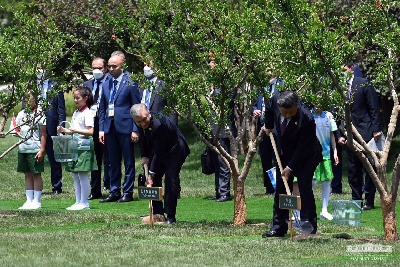 Sammit tadbirlari yakunlangach, yetakchilar tomonidan mamlakatlarimizning do‘stligi, yaxshi qo‘shnichiligi, taraqqiyot va ravnaq sari mushtarak intilishlari ramzi sifatida birgalikda daraxt ekish marosimi bo‘lib o‘tdi.