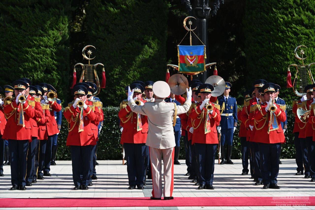 Qarorgoh maydonida oliy martabali mehmon sharafiga faxriy qorovul saf tortdi. Davlat rahbarlari faxriy qorovul safi oldidan o‘tdilar.
