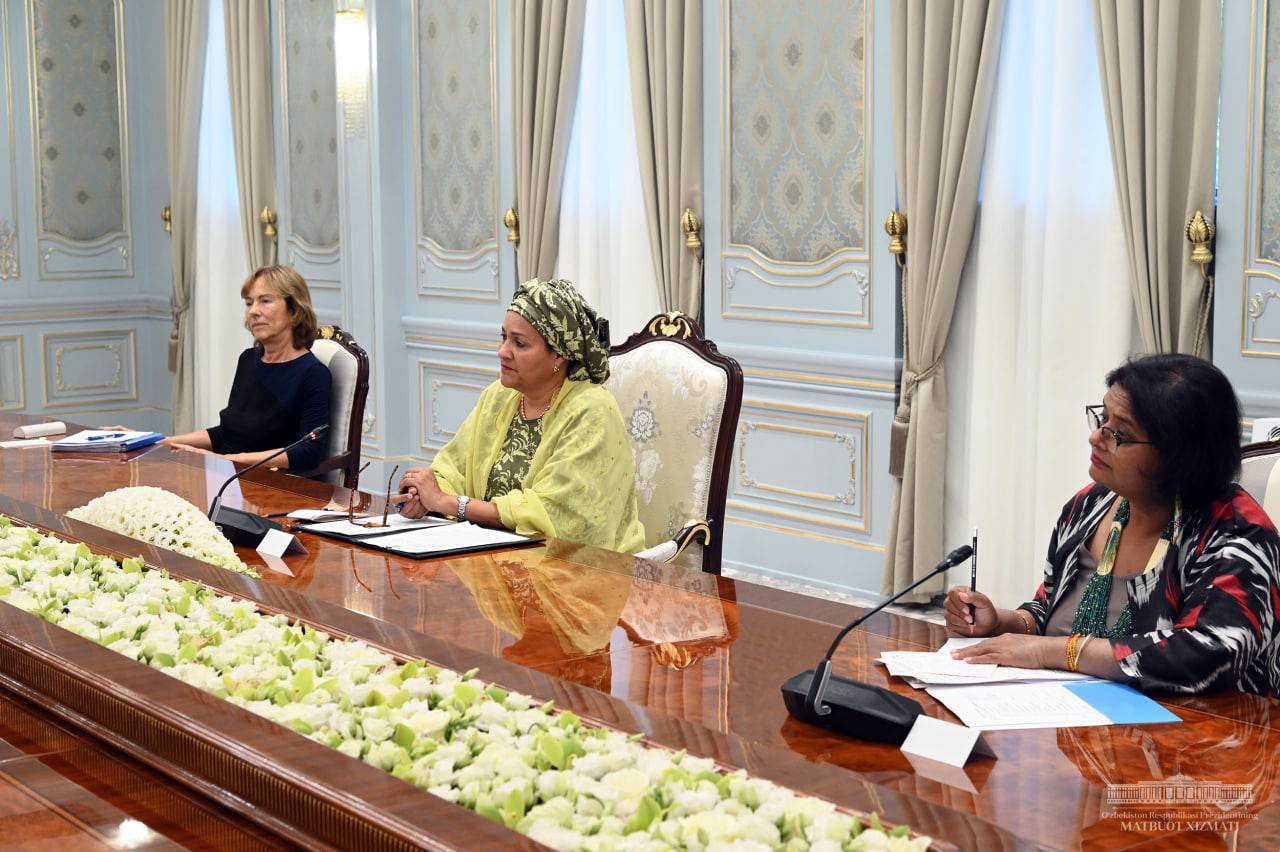 Delegatsiya rahbari Oʻzbekiston yetakchisiga tashkilot Bosh kotibi Antoniu Guterrishning samimiy salomi va eng ezgu tilaklarini yetkazdi. Taʼkidlanganidek, BMT davlatimiz tomonidan amalga oshirilayotgan ochiq va pragmatik siyosatni, shuningdek, Yangi Oʻzbekistonni barpo etishga qaratilgan hamda 2030-yilga qadar barqaror taraqqiyot sohasidagi global kun tartibining asosiy vazifalariga toʻliq mos boʻlgan tub islohotlar dasturini yuksak baholaydi.