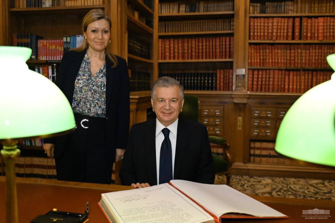 Uchrashuv yakunida Prezidentimiz Faxriy mehmonlar kitobida qayd yozib qoldirdi. Shuningdek, Fransiya Milliy yig‘ini Raisini o‘zi uchun qulay vaqtda tashrif bilan mamlakatimizga borishga taklif etdi.