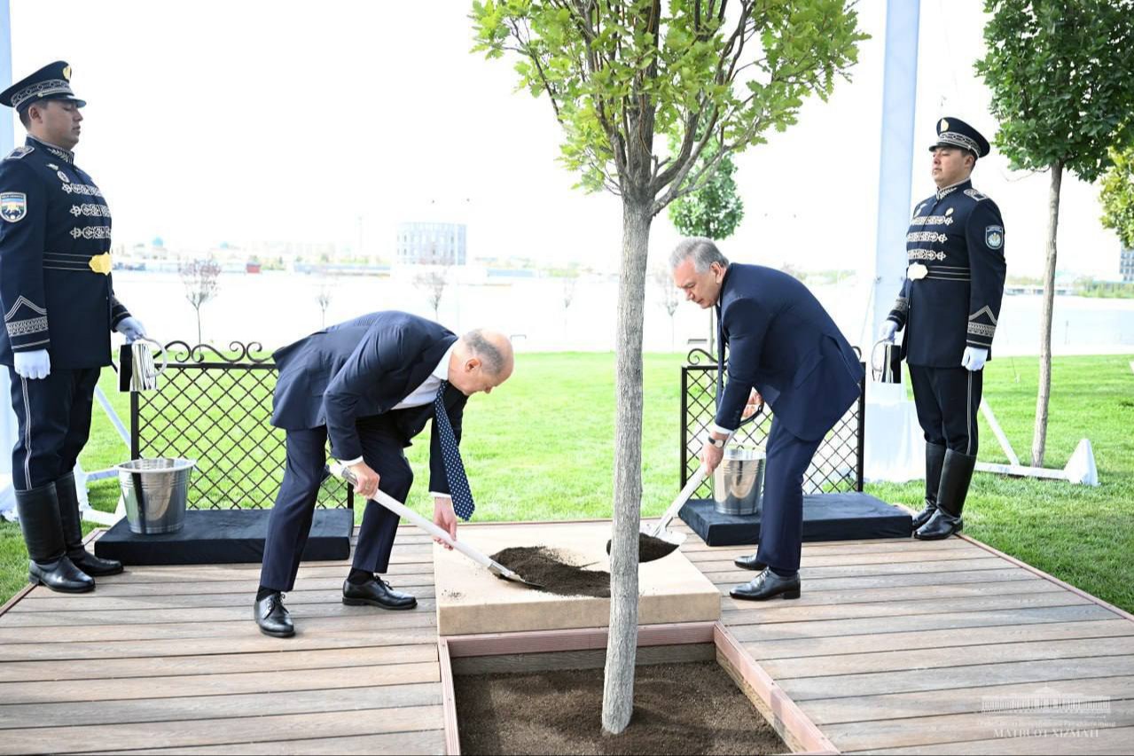 O‘zbekiston Respublikasi Prezidenti Shavkat Mirziyoyev va Germaniya Federal Kansleri Olaf Shols Kongress markazidagi xiyobonda birgalikda daraxt ekdilar.