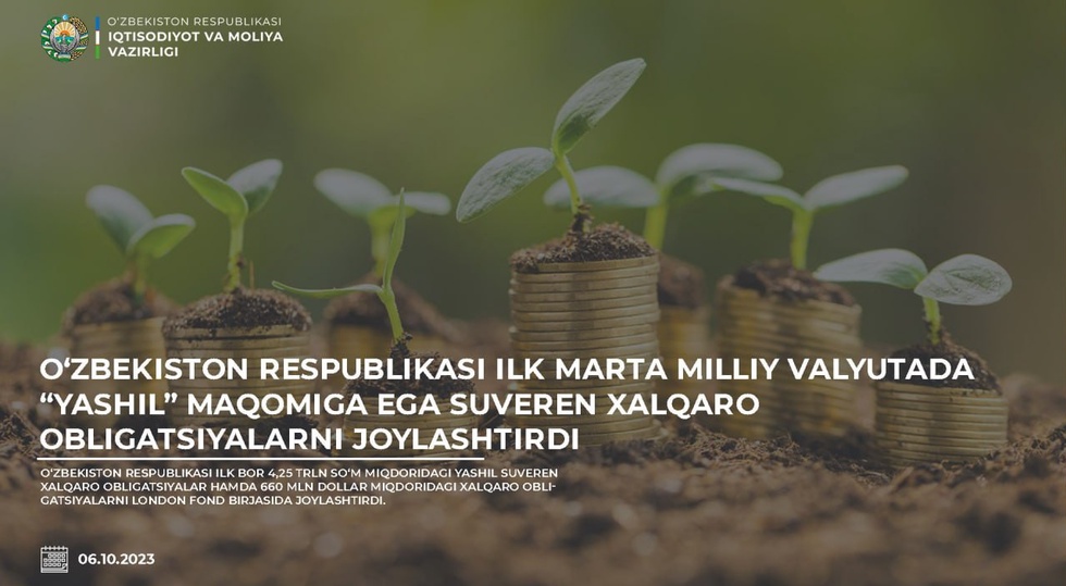 Shuni taʼkidlash joizki, soʻmda chiqarilgan suveren xalqaro obligatsiyalar MDH davlatlari ichida ilk “yashil” suveren obligatsiyalar hisoblanadi.