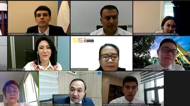 Videomuloqotda Oʻzbekiston Turizm va sport vazirining birinchi oʻrinbosari Ulugʻbek Aʼzamov va “Ipak yoʻli” turizm xalqaro universiteti prorektori Raymond Jozef Xofman, NIDA prezidenti professor Kampol Panyagomet hamda universitet jamoasi ishtirok etdi.