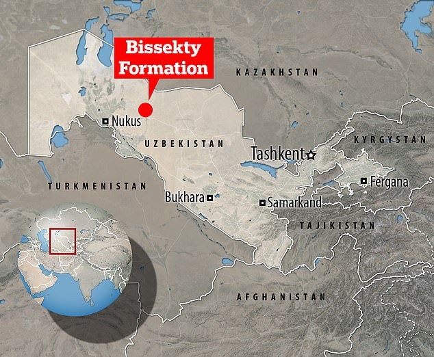 Dinozavr suyaklari Qizilqum choʻlida, “dinozavrlar qabristoni” deb nomlanadigan joydan topilgan.