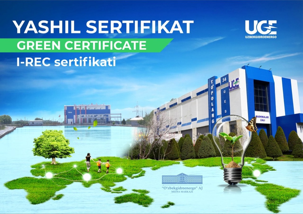 Oʻzbekiston energetika tizimida birinchi boʻlib “Oʻzbekgidroenergo” AJ tarkibidagi GESlarda “yashil energiya” sertifikatlari tizimi joriy etildi. Endilikda yashil sertifikatlar birja savdosi orqali mahalliy va xorijiy hamkorlarga sotila boshlaydi, deb xabar bermoqda “Oʼzbekgidroenergo” AJ axborot xizmati.