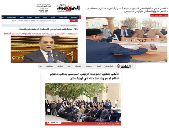Xususan, “Al-Jumhuriya” gazetasi, “Al-Usbuʼ”, “Al-Qohira24”, “Sada al-Balad” kabi elektron nashrlarda Xalqaro ziyorat turizmi haftaligiga bagʻishlangan xabarlar tarqatildi.