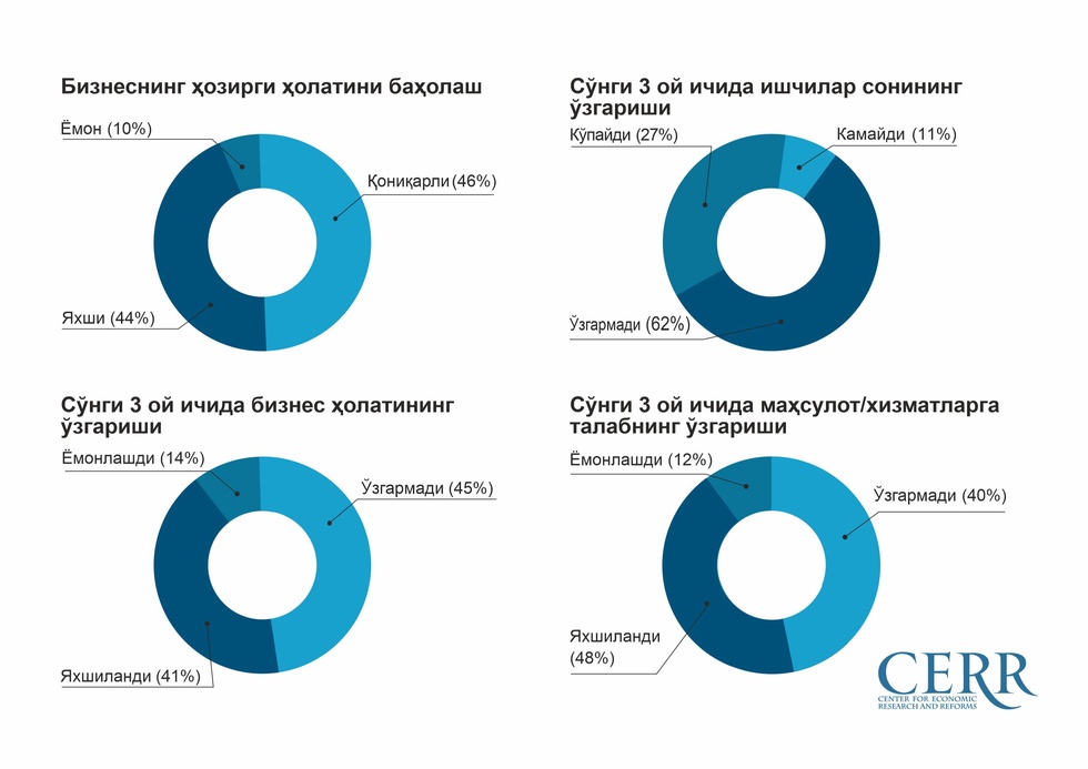 Oʻtkazilgan soʻrov natijalari shuni koʻrsatadiki, salbiy tabiiy hodisalarga qaramay, joriy yilda iqtisodiy tiklanishning barqaror xususiyatidan darak beradi, bu esa soʻnggi toʻrt yil davomida amalga oshirilgan islohotlar samaradorligiga bogʻliq boʻlib, biznes uchun qulay ishbilarmonlik muhiti va iqtisodiyotning barqarorligini taʼminlaydi.