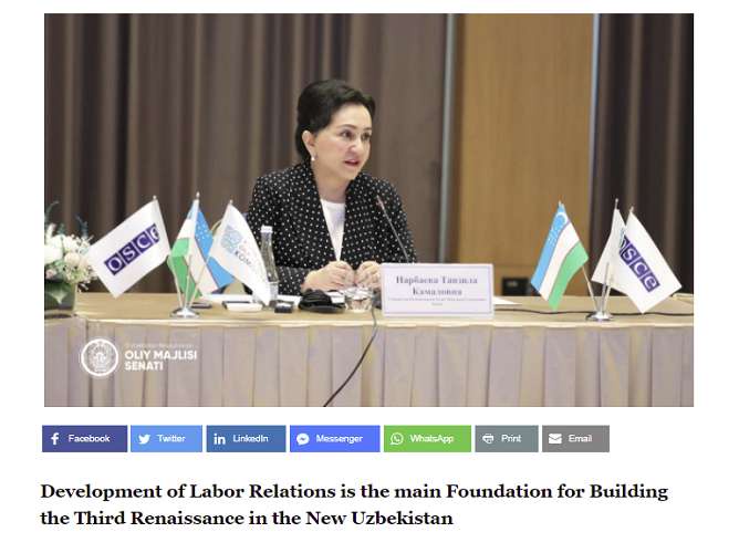 Xususan, Islom hamkorlik tashkilotining “OIC Today” jurnali ushbu maqolani oʻz sahifalarida eʼlon qildi. Unda Oʻzbekistonda munosib mehnat sharoitlarini yaratish, bandlikni taʼminlash boʻyicha koʻrilayotgan chora-tadbirlar, bolalar va majburiy mehnatning va odam savdosining oldini olish boʻyicha mamlakatimiz erishgan muvaffaqiyatlar, shuningdek, bu sohada xalqaro tashkilotlar bilan hamkorlik toʻgʻrisidagi maʼlumotlar oʻquvchilarning eʼtiboriga havola qilingan.