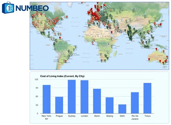 Dunyo mamlakatlari va shaharlarida yashash xarajatlari reytingi yiliga ikki marta Numbeo onlayn maʼlumotlar bazasida paydo boʻladi. Bu baza butun dunyo boʻylab isteʼmolchilarning sarf-xarajatlari va narxlari toʻgʻrisidagi juda katta statistik maʼlumotlarni qayta ishlashdan soʻng yaratilgan.
