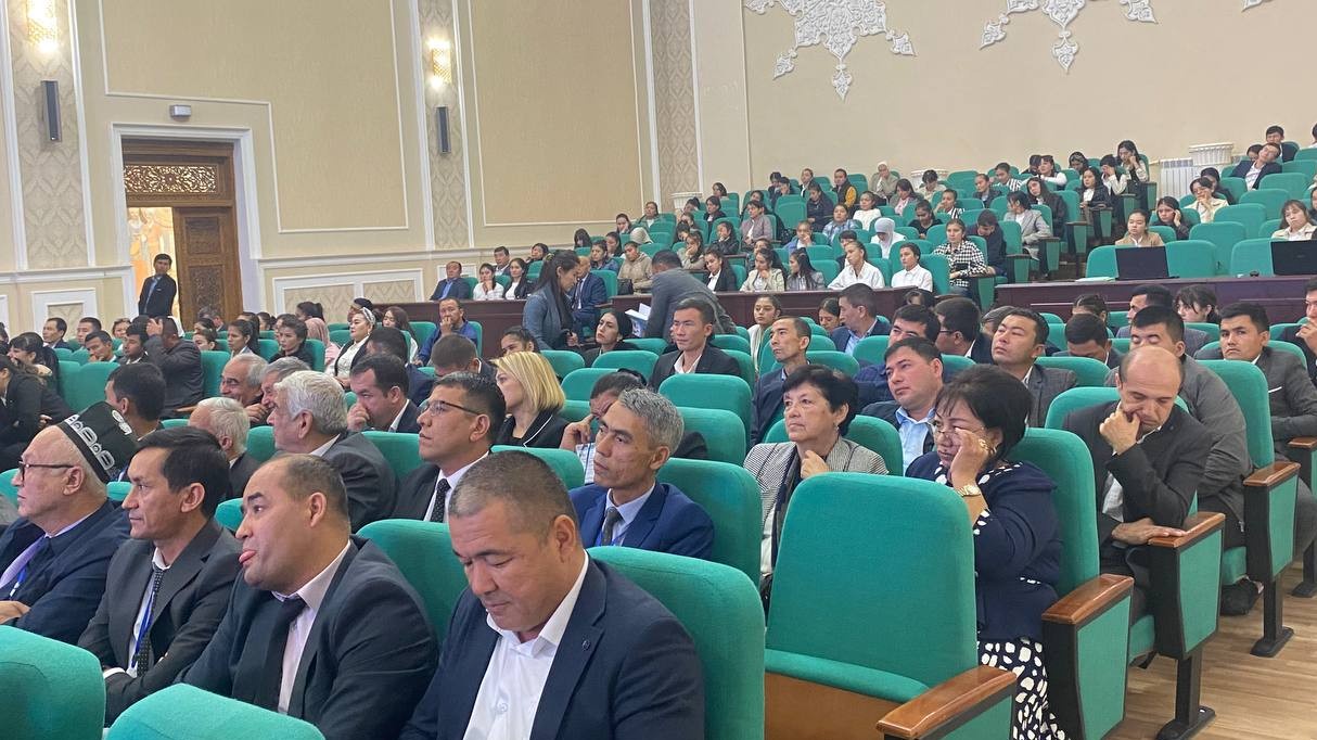 Anjuman yalpi majlisidan soʻng ishtirokchilar shuʼbalarga boʻlingan holda dolzarb mavzular maʼruzalar qilishyapti.