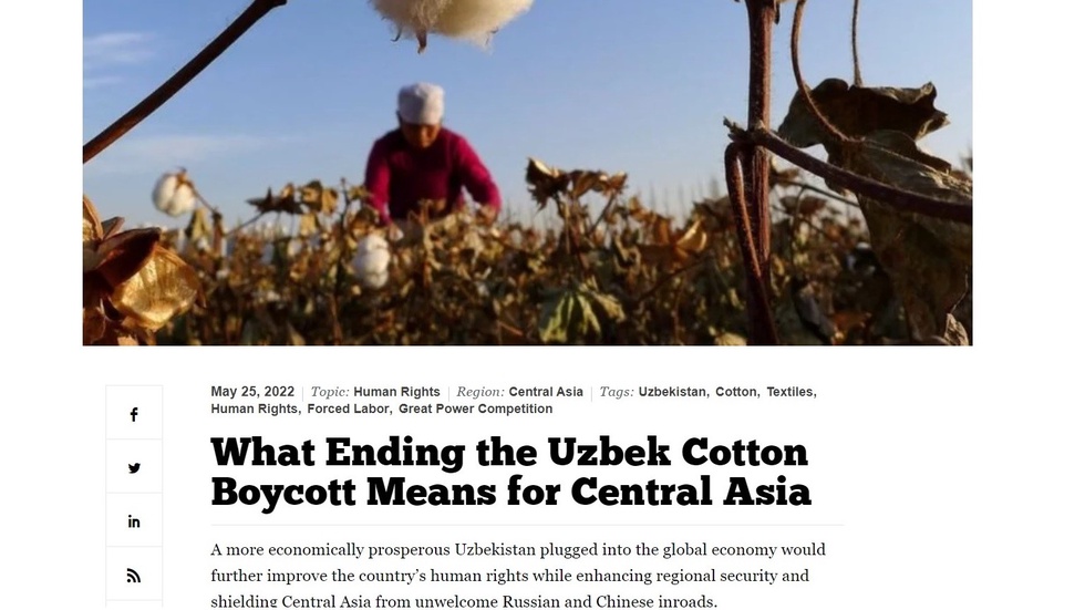 Shu bilan birga, “Cotton Campaign” koalitsiyasi tomonidan 12 yillik “paxta boykoti”ning bekor qilinishi xalqaro brendlarning Oʻzbekiston bozoriga qaytishi uchun imkoniyatlar ochmoqda. Adidas, Tesco, IKEA, Marks & Spencer, H&M, Zara va Gap kabi yirik kompaniyalar oʻzbek paxtasini yetkazib berishni qaytadan boshlashlari kutilmoqda.