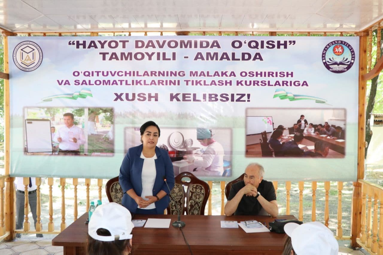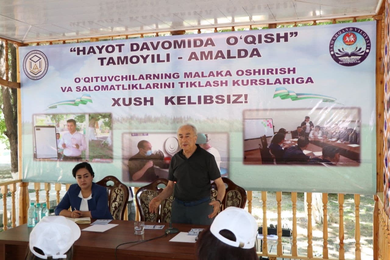 Samarqand viloyati xalq taʼlimi boshqarmasi, malaka oshirish hududiy markazi, “SILK ROAD international Academy in Samarkand” hamda “Maʼrifatparvarlar” jamiyati Samarqand viloyati boʻlimi hamkorligida oʻqituvchilarning dam olishi va salomatligini tiklashi bilan birga, ularning malakasini oshirish maqsadida “Hayot davomida oʻqish tamoyili – amalda” shiori ostida maxsus kurslar tashkil etilmoqda.