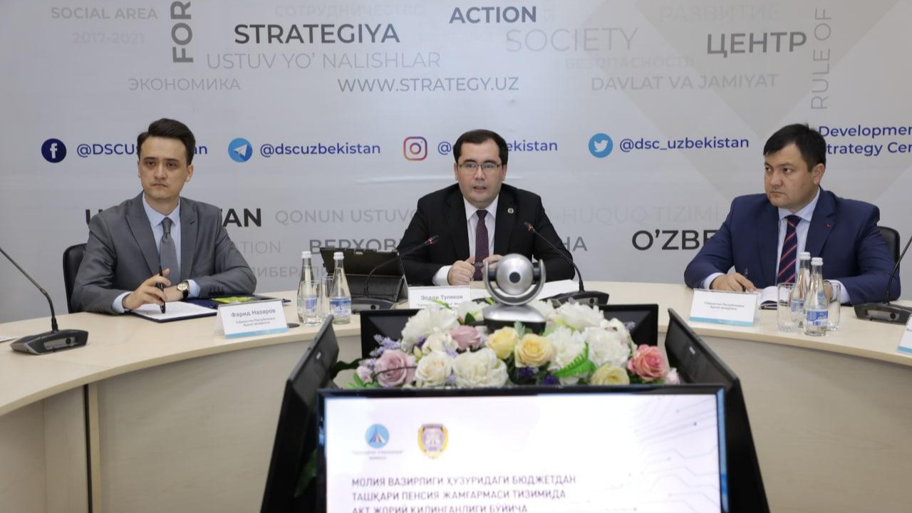 “Taraqqiyot strategiyasi” markazi ekspertlari, huquqshunoslar, Adliya vazirligi, Moliya vazirligi huzuridagi Byudjetdan tashqari pensiya jamgʻarmasi xodimlari, nodavlat notijorat tashkilotlar, fuqarolik jamiyati institutlari hamda ommaviy axborot vositalari vakillari ishtirok etgan jamoatchilik eshituvida jamgʻarma faoliyatiga oid qonunchilik hujjatlari, vazifa va topshiriqlarning joylardagi ijrosi kabi masalalar tanqidiy tahlil qilindi.