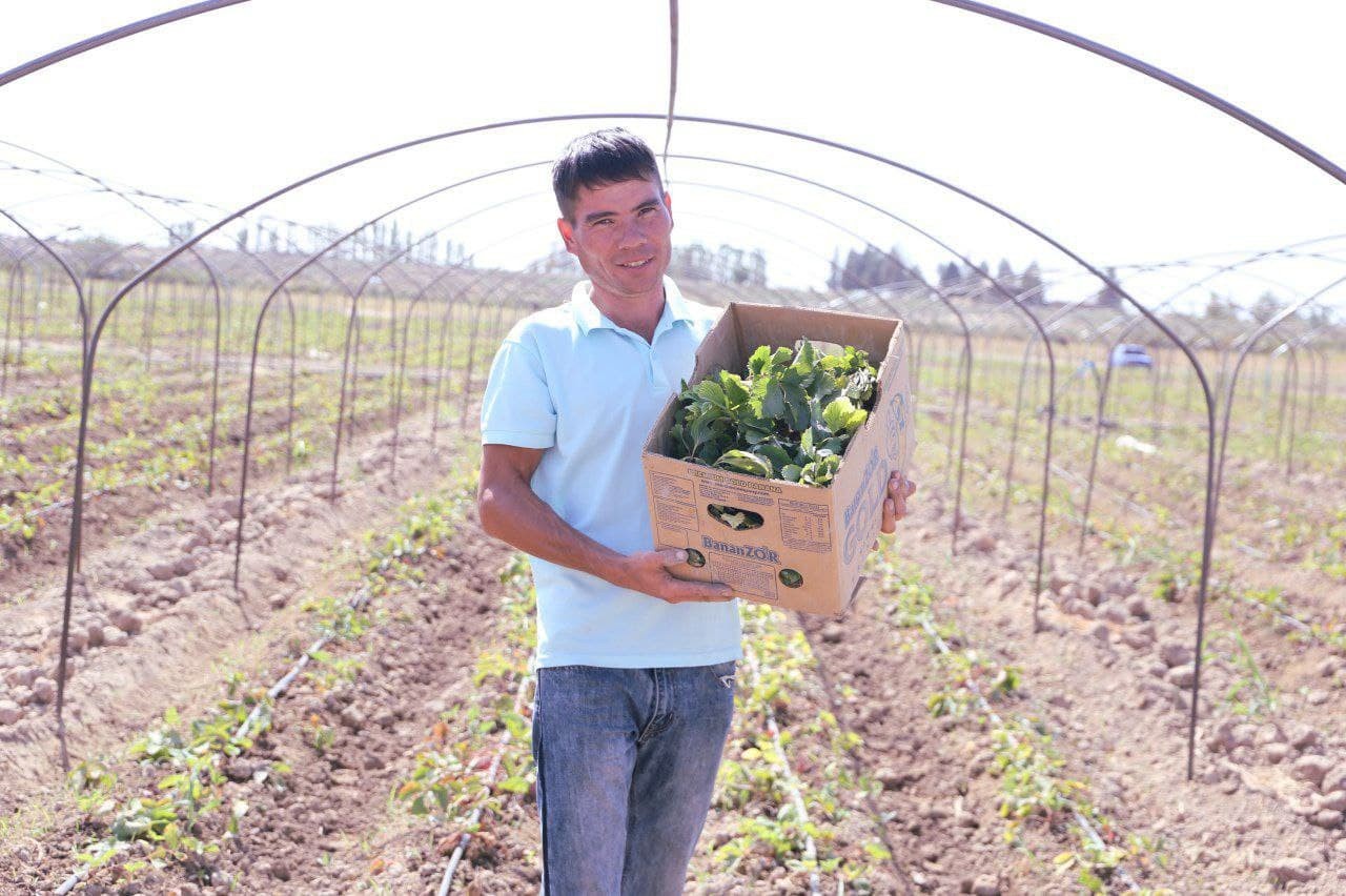 — Yoshim 33 da, oilaliman, — deydi Bahodir. — Ishsiz bo'lganim sababli ro'zg'or tebratishda qiynalib qoldim. Yordam so'rab, tuman hokimligiga murojaat qildim. Avvaliga, moddiy yordam so'radim. Biroq mutasaddilar qulupnay yetishtirishning foydasi, yaratilgan imkoniyat haqida so'zlab berishganidan keyin bu ishga qiziqib qoldim. O'zlari ekib, parvarishlashni o'rgatishdi. Nasib etsa, ilk hosilning o'zidan kredit to'lovini yopish niyatidaman.