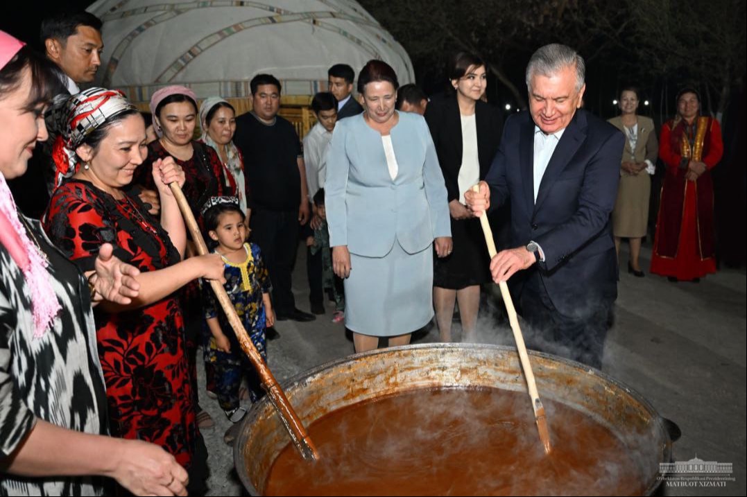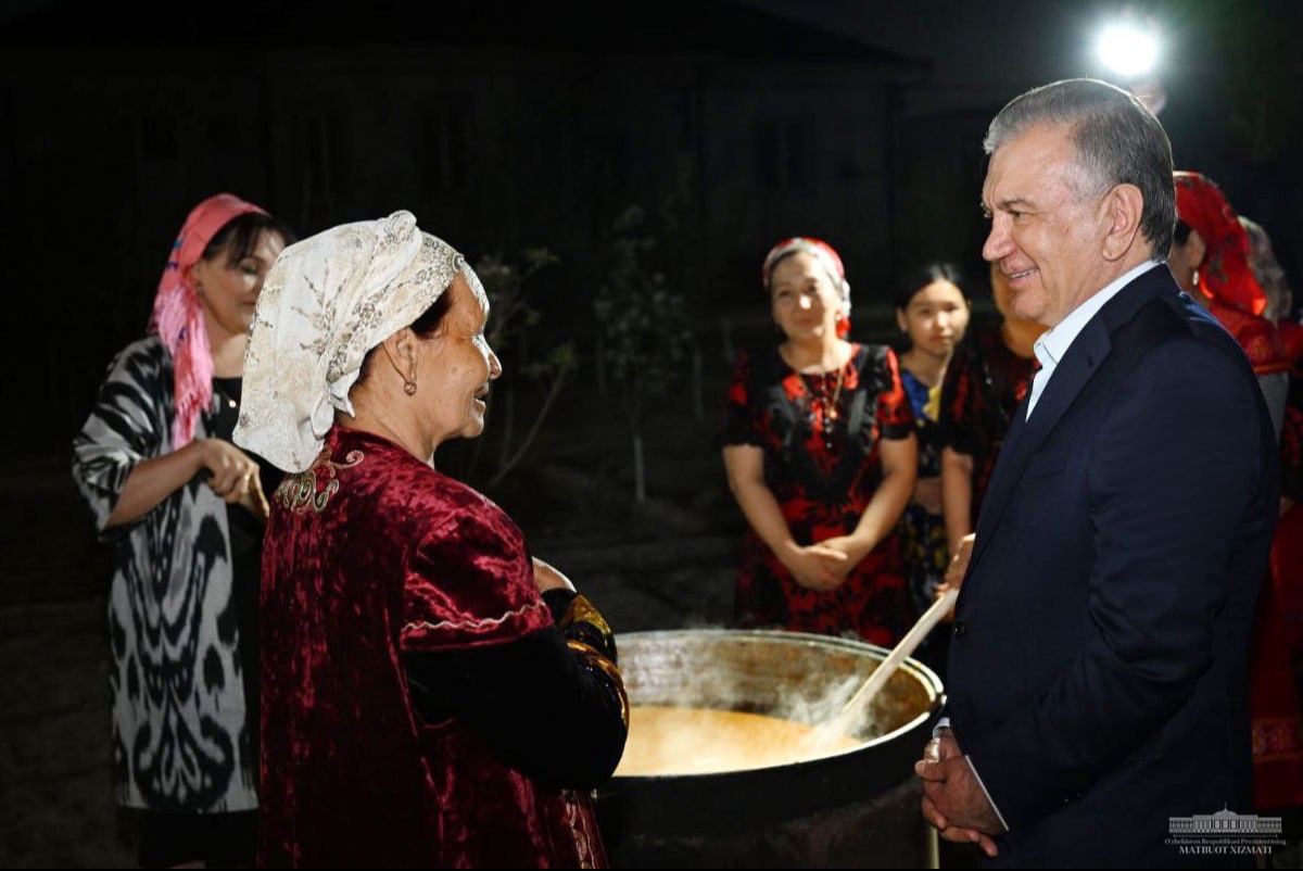Mahalla bilan tanishish uzoq davom etdi. Davlat rahbari shu yerlik Quo‘anshbay Seytnazarov xonadonida iftorlik qildi.