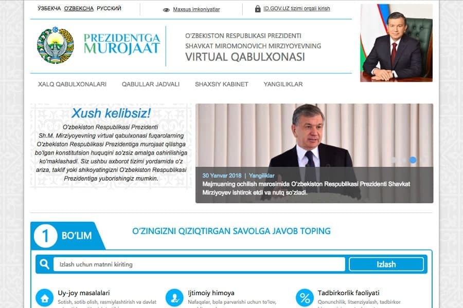 Albatta, bu – Xalq qabulxonalari instituti amalda berayotgan natijalarga birgina misol, xolos. Xalq bilan muloqotning bu noyob tizimi tufayli murojaatlar bilan ishlash masalasi davlat siyosatining eng ustuvor yoʻnalishlaridan biriga aylandi. Har bir yurtdoshimiz va xorijlik fuqarolar uchun bevosita davlat rahbariga murojaat etish imkoniyati paydo boʻldi.