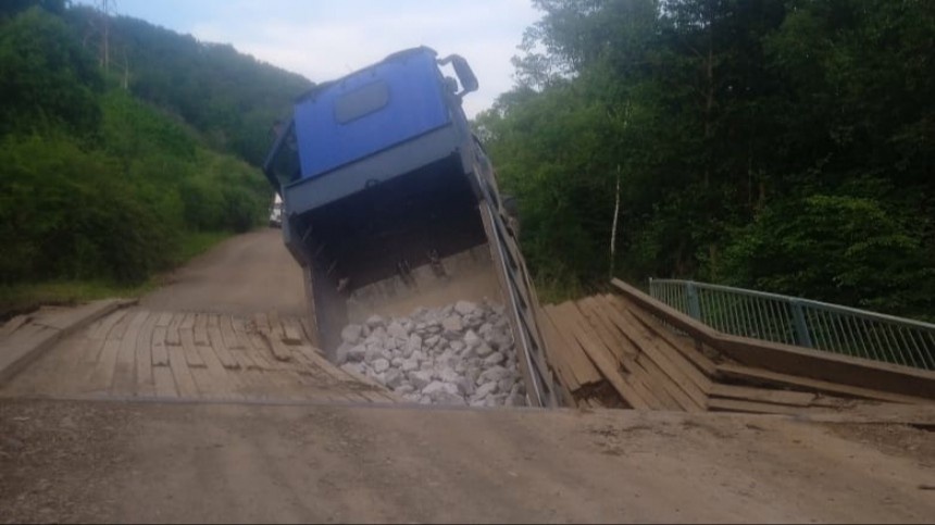 Primoryeda tosh ortilgan yuk mashinasi og'irligi ta'sirida ko'prik qulab tushdi