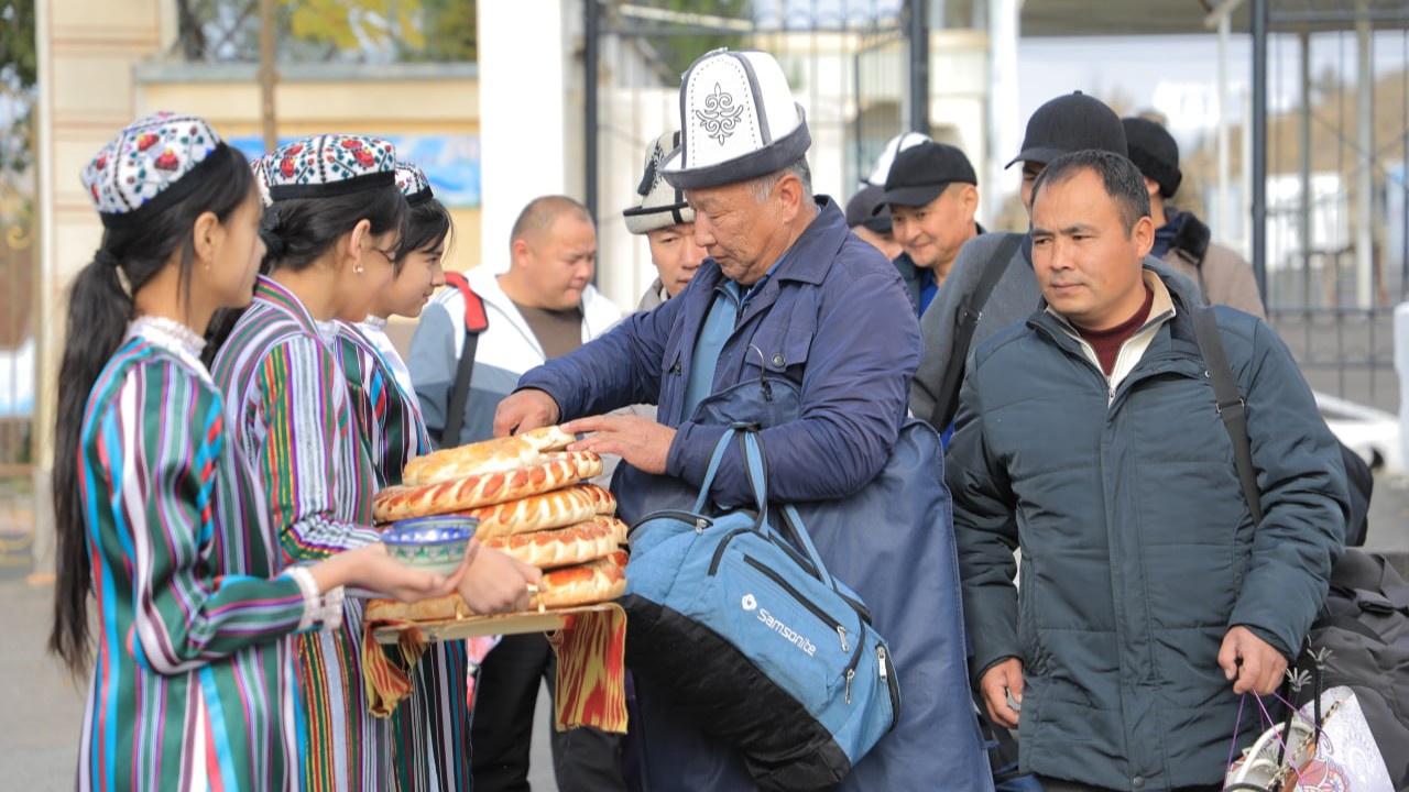 Aziz mehmonlarni “Kosonsoy” chegara postida viloyat hokimining o'rinbosari Botir Nuriddinov, To'raqo'rg'on tumani hokimining birinchi o'rinbosari Boburjon Qobilov kutib olishdi. Karnay-surnay sadolari ostida qirg'iz birodarlarga taomilga ko'ra, non-tuz tutildi.
