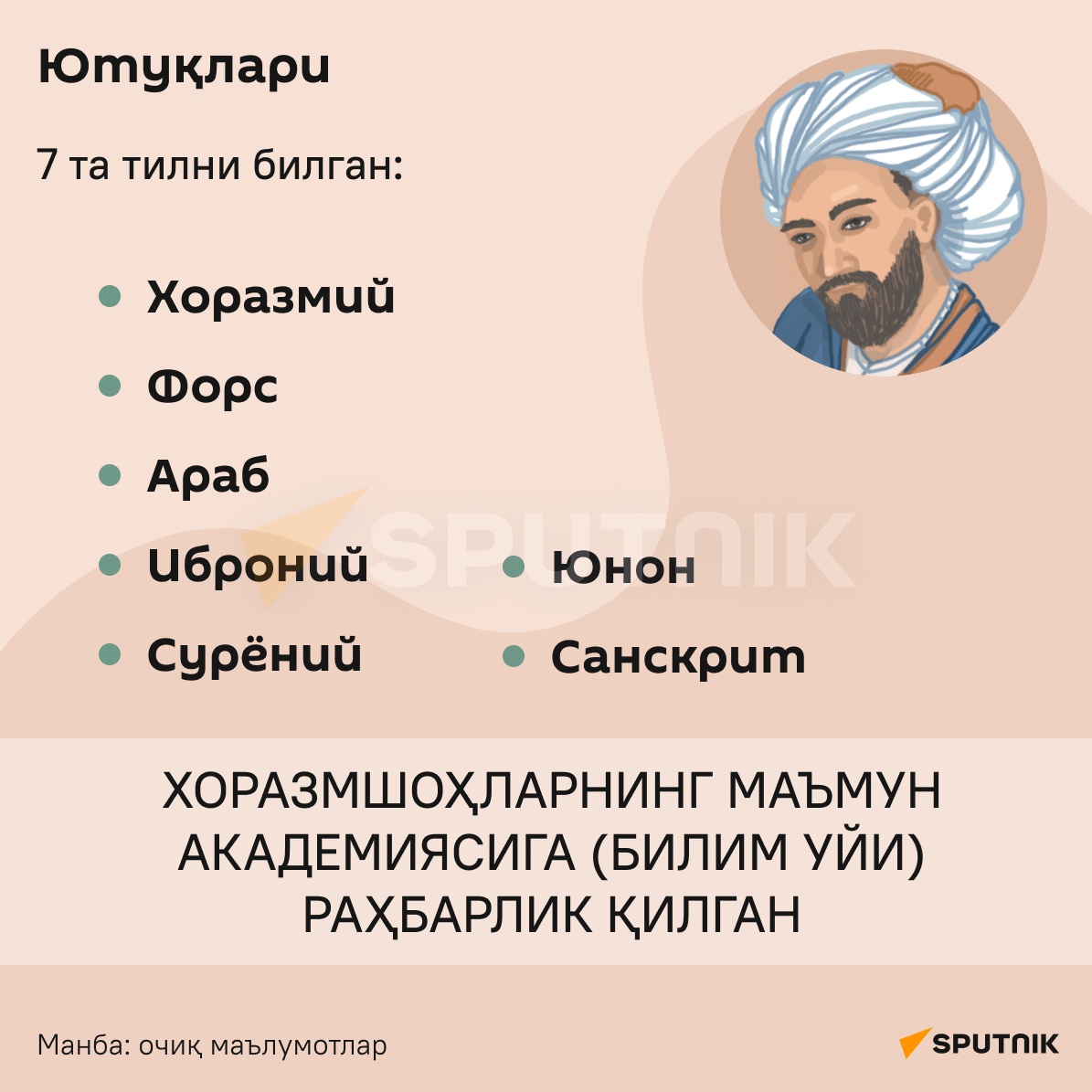 Ushbu infografikalar orqali yirik olim va faylasuf haqidagi ayrim qiziqarli maʼlumotlarni bilib olishingiz mumkin.